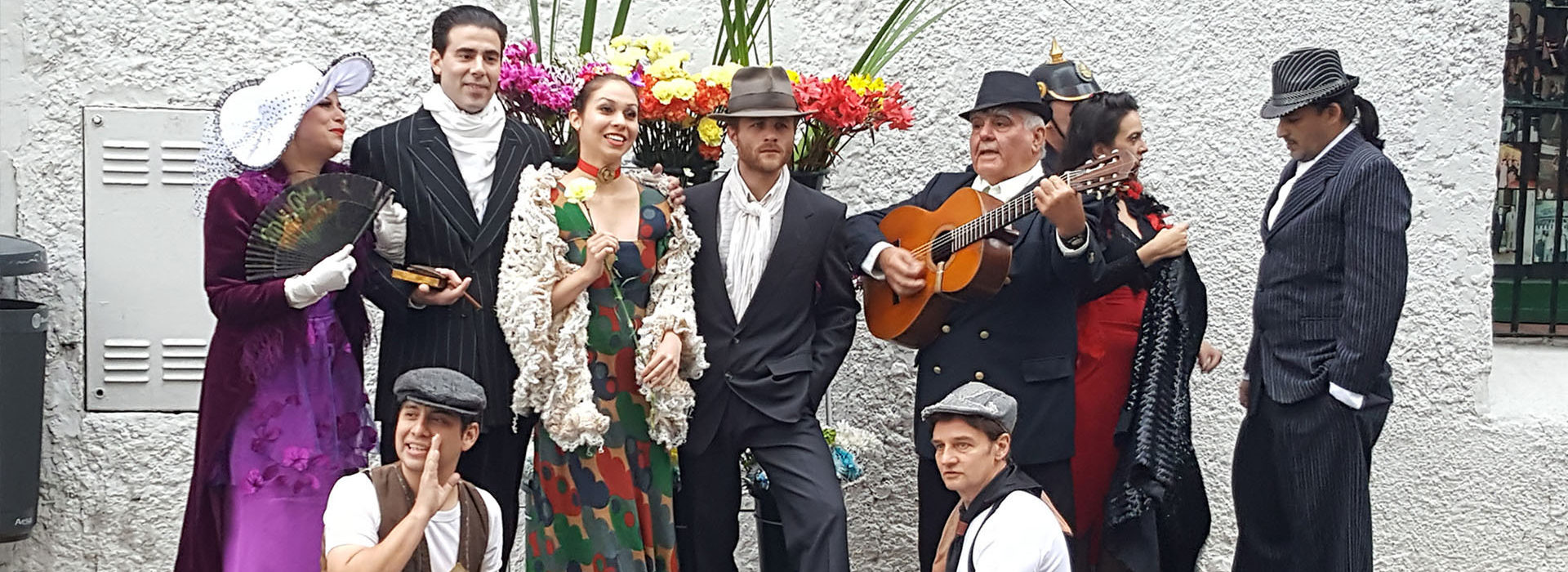 El Viejo Almacen é a única casa de tango que produz, como trabalho criativo, Buenos Aires Antiguo, recriando a Buenos Aires de antigamente. Na mesma rua Balcarce, um grupo de atores vestidos de terno vintage representam a década de ouro dos anos 40 com todos os seus personagens e recebem os visitantes com Cocktail de bebidas e petiscos quentes e frios. Os carros antigos fazem parte do cenário deste programa. A noite termina com um Jantar de Gala em Nuestra Tanguería acompanhado de show de Tango exclusivo para o grupo.